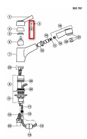 Blanco skrue til greb på Blanco Elipso, Pylos og Zenos armaturer