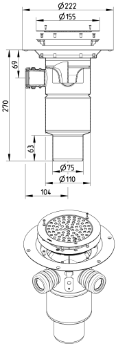 BLÜCHER Domestic-150 afløb for vinylgulve, med sideindløb og lodret Ø75mm udløb. Ønskes vandlås kan Blücher indbygningsvandlås tilkøbes, se relaterede produkter. |