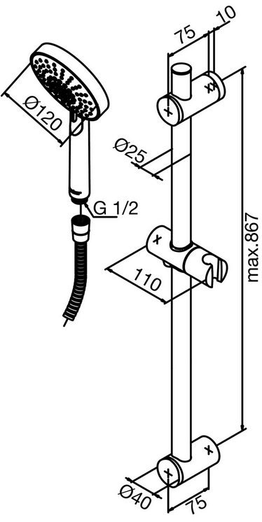 Kudos Plus Brusersæt med justerbar bruserstang