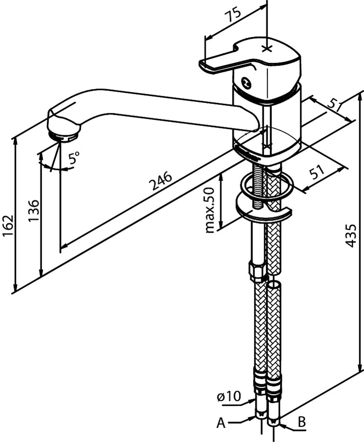 Damixa Pine køkkenbatteri med lav tud