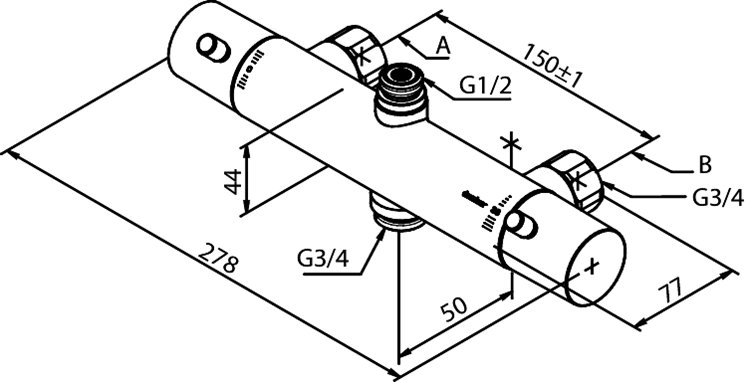 Damixa Thermixa 100 termostatbatteri til brus. ½" afgang op 3/4" afgang ned Excl. rosetter og forskruninger (se relaterede varer nedenfor). |
