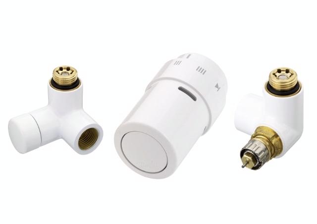 RA-URX ventilsæt, højre montering, hvid RAL 9016 Sættet består af: Termostat type: RAX Reguleringsventil: RA-URX Afspærringsventil: RLV-X