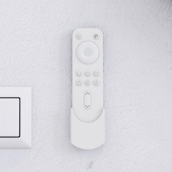 Fjernbetjeningen leveres med et ophængsbeslag, som kan monteres diskret på væggen eller indersiden af et vaskeskab, så du altid har lysstyringen lige ved hånden.