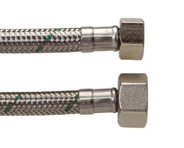 Slangesæt for koldt eller varmt drikkevand, slagen er af Softpex med rustfri stålflet og grøn stribe. Anvendelse: Cisterner, vaske- og opvaskemaskiner, kaffemaskiner samt blandearmaturer eller lign.