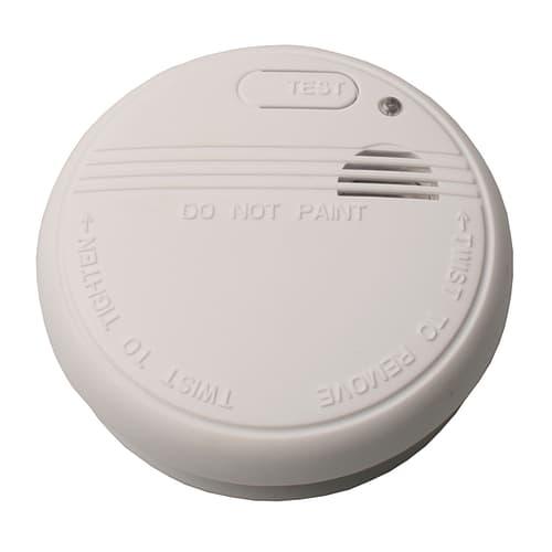 Røgalarm med optisk detektor, med 9V batteri Røgalarmen har en optisk sensor, der registrer røg. Den monteres direkte på loftet og anvender 1 stk. 9 V batteri. Der medfølger på batteri, skruer, plugs og underlag til montage. Reagerer hurtigt med 85dB signal