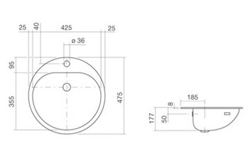 Alape EW3Ø47 håndvask t/nedfældning - Med overløb - 1 hanehul