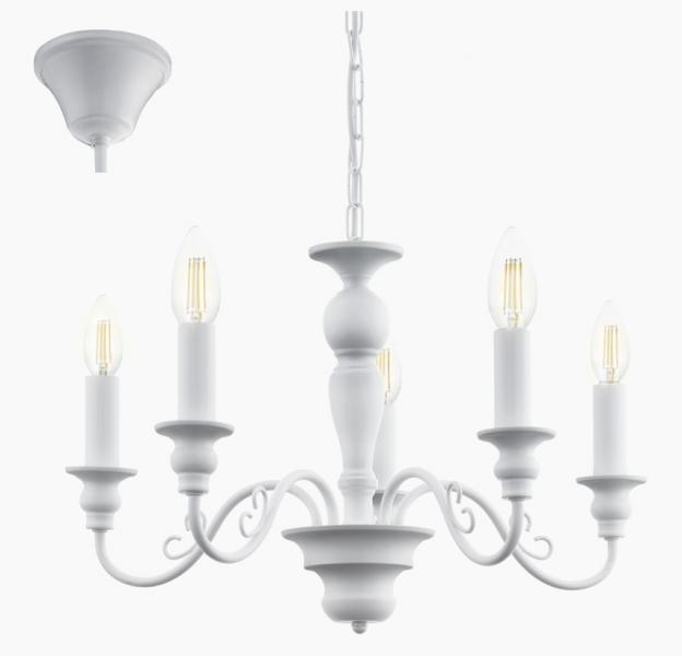 EGLO CAPOSILE LYSEKRONE 5L HVID ; MÅL: H:1100 Ø:545 ; FATNING: E14 ; MAX WATT: 5X40W ; ENERGIKLASSE: A++ - E ; ENERGIMÆRKE: A++ - E ; EKSKL. LYSKILDE