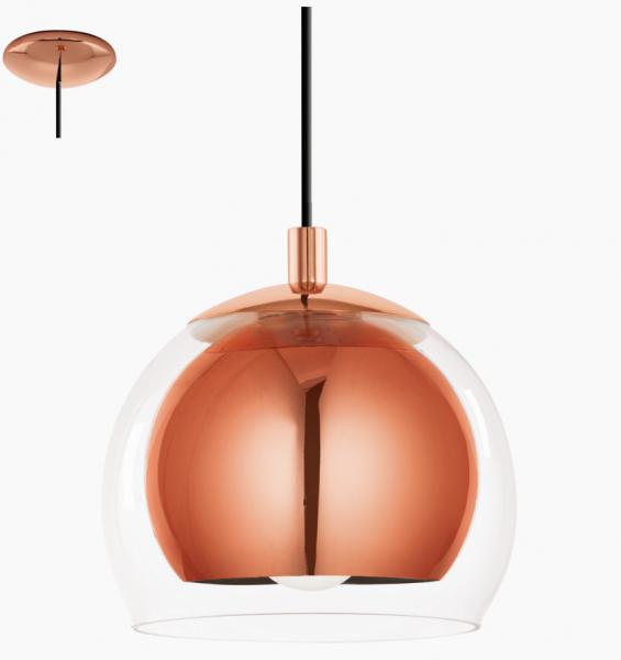 EGLO ROCAMAR PENDEL KOBBER/KLAR ; MÅL: H:1100 Ø:190 ; FATNING: E27 ; MAX WATT: 1 X 60W ; EKSKL. LYSKILDE
