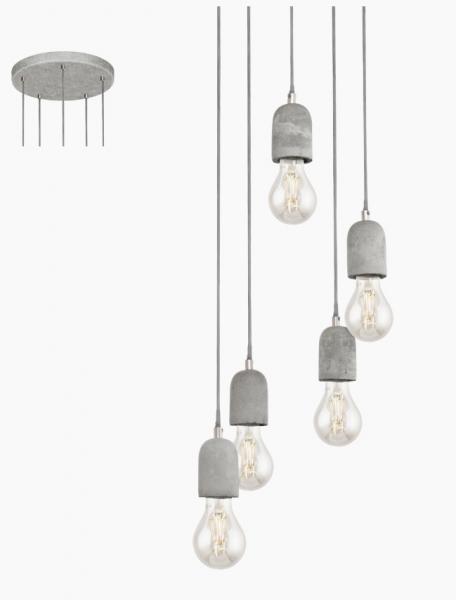 EGLO SILVARES OPHÆNG 5L BETON ; MÅL: H:1500 Ø:350 ; FATNING: E27 ; MAX WATT: 5X60W ; ENERGIKLASSE: A++ - E ; ENERGIMÆRKE: A++ - E ; EKSKL. LYSKILDE