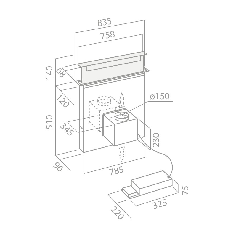 Eico Pandora X indbygget emhætte t/ bordplade - Rustfrit stål Eico Pandora X, Emfang for indbygning i bordplade med intern motor. Specifikationer: