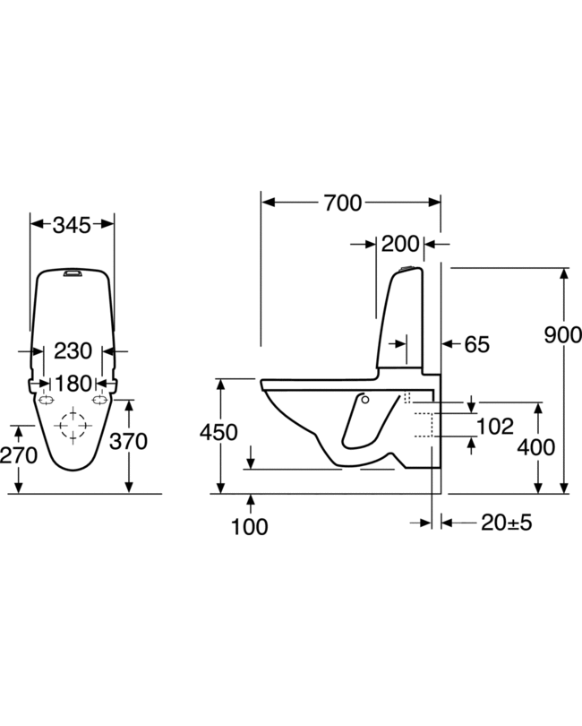 Gustavsberg Nautic væghængt toilet 1522 m/C+ og åben skyllerand 345 X 700 X 800 MM Montage på eksisterende indbygget cisterne: