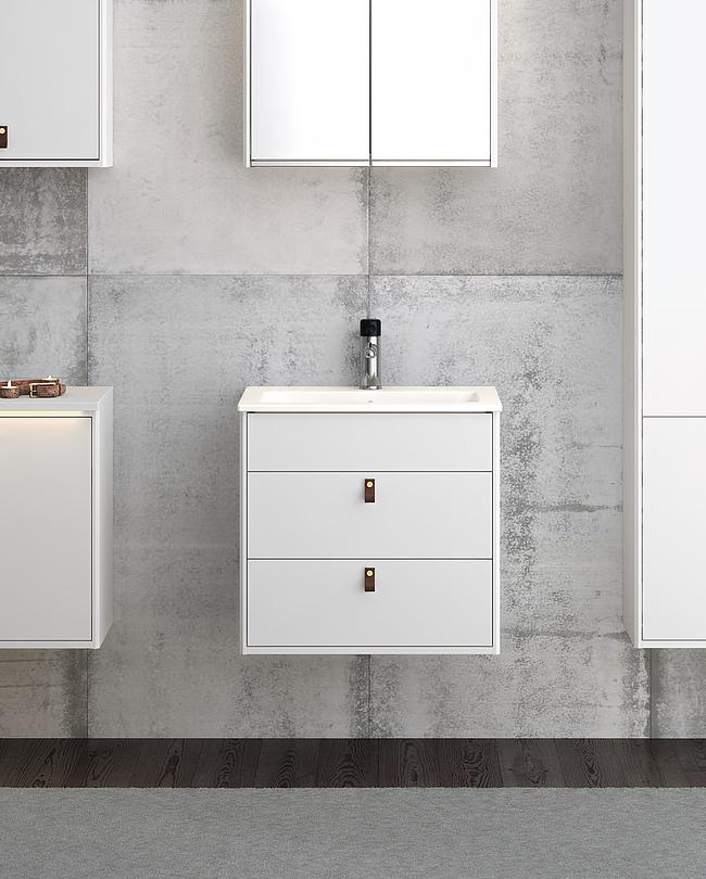 Vægskabe og højskabe fås desuden i to forskellige dybder, så de passer til både små og store badeværelser.