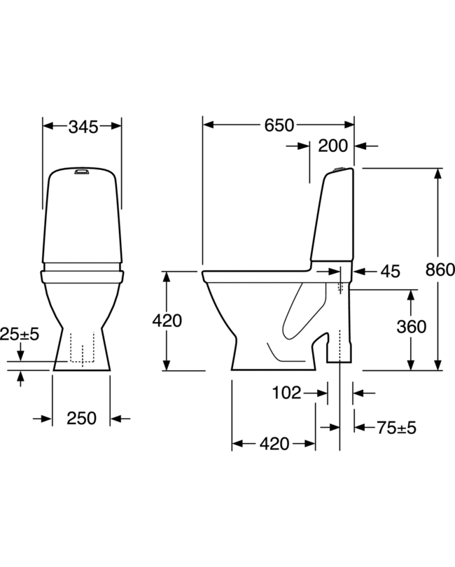 Gustavsberg Nautic 1591 toilet m/Hygienic Flush - Stor fod