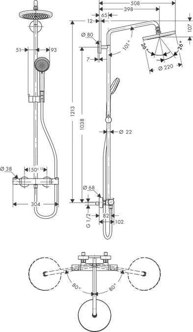 består af: hovedbruser, håndbruser, brusetermostat, bruserslange, glider