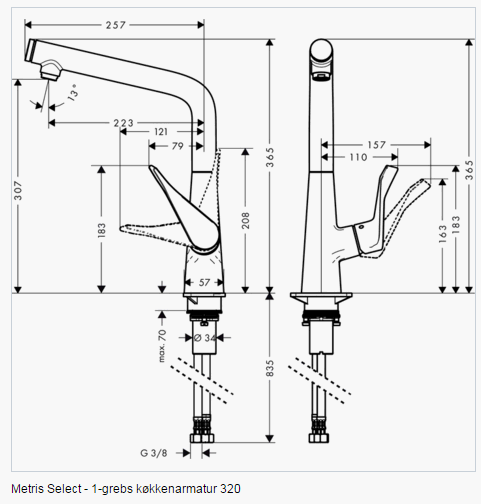 Hansgrohe Metris Select køkkenarmatur m/select knap - Krom Produktkendetegn