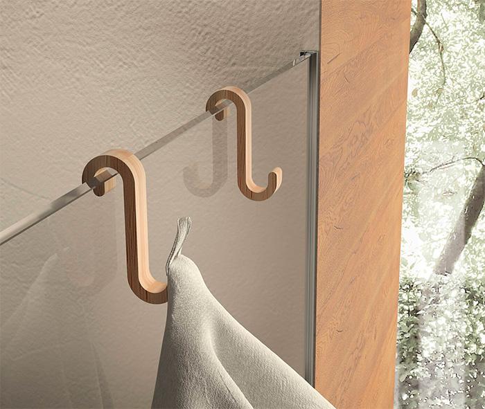 At kunne hænge håndklæder, badekåbe eller andet badeværelsestilbehør på direkte på glasvæggen er helt oplagt til det lille badeværelse - eller blot badeværelset, hvor der er ekstra behov for praktisk opbevaringsplads.