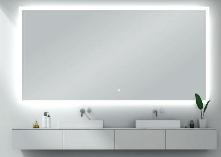 Mie firkantet spejl m/integreret LED lys, touch og backlight - 120 cm Tidløst spejl med lys på front og backlight der nemt styres med touch. Lumens, Ra og kelvin, hvad betyder det egentlig det hele, lad os hjælpe dig på vej. Når man taler RA værdi, så taler man om farvegengivelsens ægthed. For at sætte det i perspektiv, så kan vi sige at solen har en farvegengivelse på 100. Dette spejl har en markedets bedste værdier, nemlig over 95 og dermed er ægtheden så ægte som det nærmest kan lade sig gøre. Spejlbilledet bliver, om man så må sige, mere autentisk. Jo lavere RA værdi, jo mindre autentisk og man oplever mere grålige toner i spejlbilledet. Når man taler lumen, så er det her vi i gamle dage snakkede watt, altså en måleenhed for mængden af lys. Man vil gerne have en høj lumen, så man kan få et godt, skarpt og kraftigt lys, altså et lys med høj kvalitet. Ledbånd på disse spejle har 120 pærer pr. meter, absolut blandt markedets højeste. Du må ikke lade dig skræmme af, at en for høj lumen kan blænde eller være koldt, det er kelvin der afgøre dette. Lad os se på kelvin. Kelvin er det vi taler om når vi taler om farve og varme i lyset. På denne model er der 3 muligheder