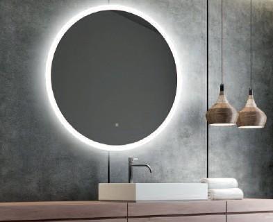 Tidløst rundt spejl med lys på front og backlight der nemt styres med touch.