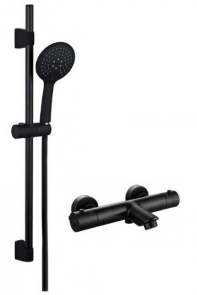 Nortiq Seram komplet badekararmatur - Mat sort Flot sæt inkl armatur med termostat Består af