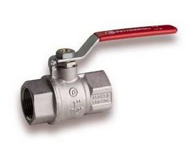Kraftig kuglehane med fuldt gennemløb. TEA overfladebehandling. Muffe/muffe. Rødt stålhåndtag.