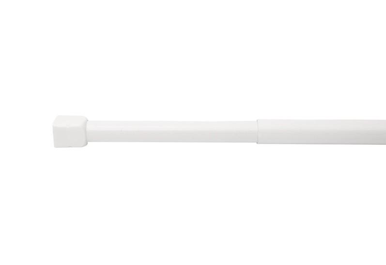 Ridder Eco Teleskopstang - Hvid - 110-185 cm Denne teleskopstang bruges på badeværelset til ophæng af badeforhæng. Stangen er produceret i aluminium i en hvid finish med hvide ender af plastik. Teleskopstangen er fleksibel, da den er justerbar i længden, så den passer til dit badeværelse. Desuden kan den nemt beskæres efter ønske. Teleskopstangen er nem at montere, da den blot fastspændes mellem væggene uden boring.