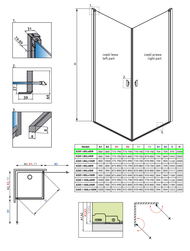 Strømberg Noma 120 bruseniche - 80x80 cm - Klar glas/steel