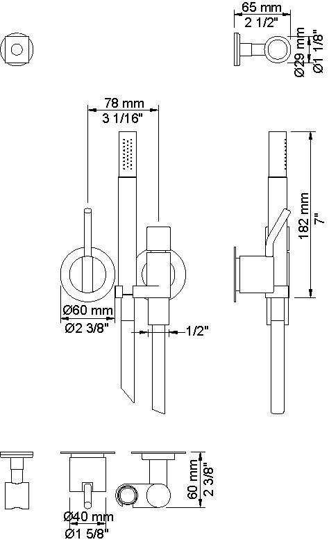 Vola 171MT9-16 brusearmatur m/håndbruser og holder - Krom