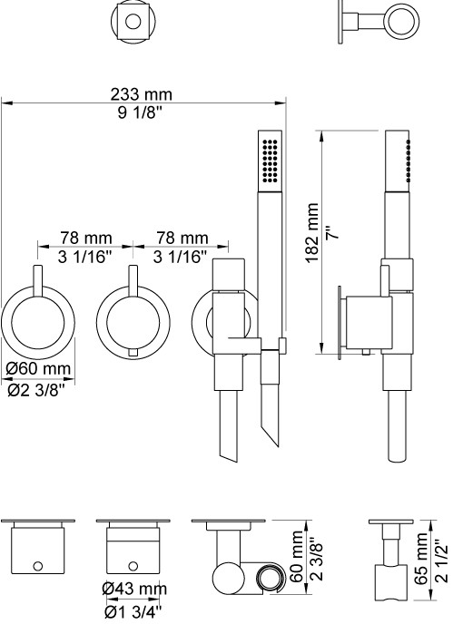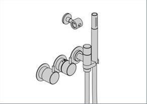 Vola Indbygningstermostat med fast afgangsmuffe T2 håndbruser med metalslange og holder til højre Rosetter Krom 16 3/4''RG/PEX |