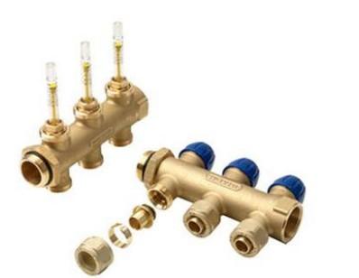 Wavin fordelerrør til gulvvarme med 4 afgreninger og koblingssæt til 16 mm pex eller alupex.