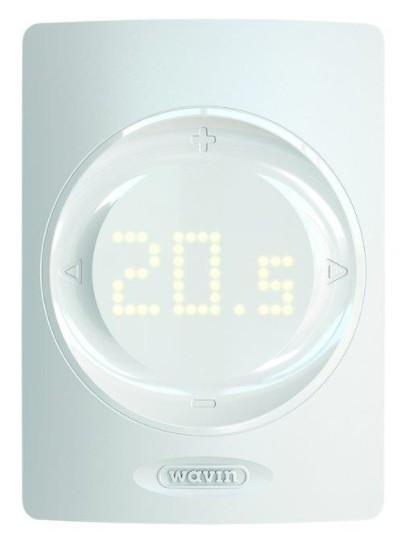 Trådløs rumtermostat anvendes sammen med Wavin Sentio styreenheden til regulering af rumtemperaturen i gulvvarmeanlæg.